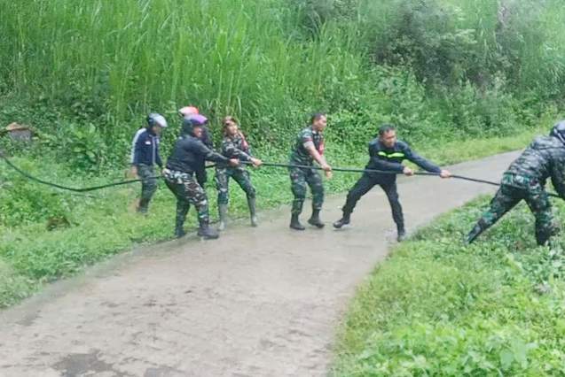 Gerak Cepat, TNI Polri Tangani Kabel Listrik Membentang di Jalan Pesula, Rano Tana Toraja