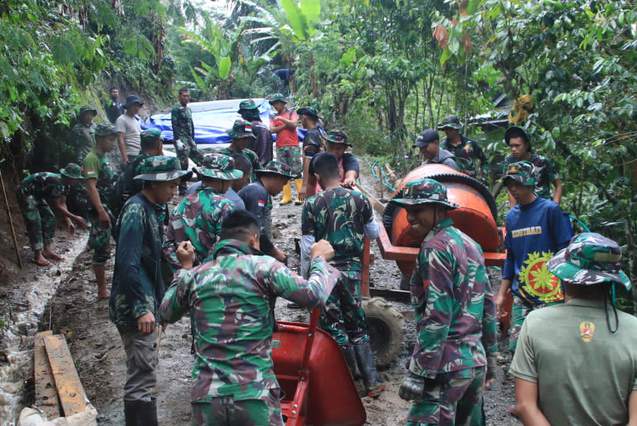 Puluhan Pasukan TNI Diterjunkan Ke Lembang Bo'ne Buntusisong, Rabat Beton Sepanjang 600 Meter Akan Dikerjakan
