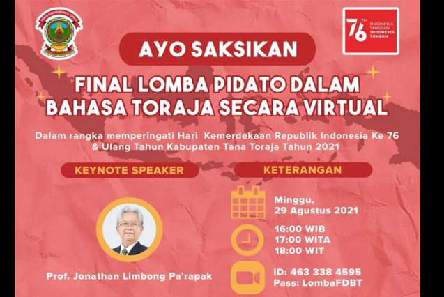 Saksikan Grand Final Lomba Pidato Dalam Bahasa Toraja Secara Virtual yang Diselenggarakan oleh FDBT